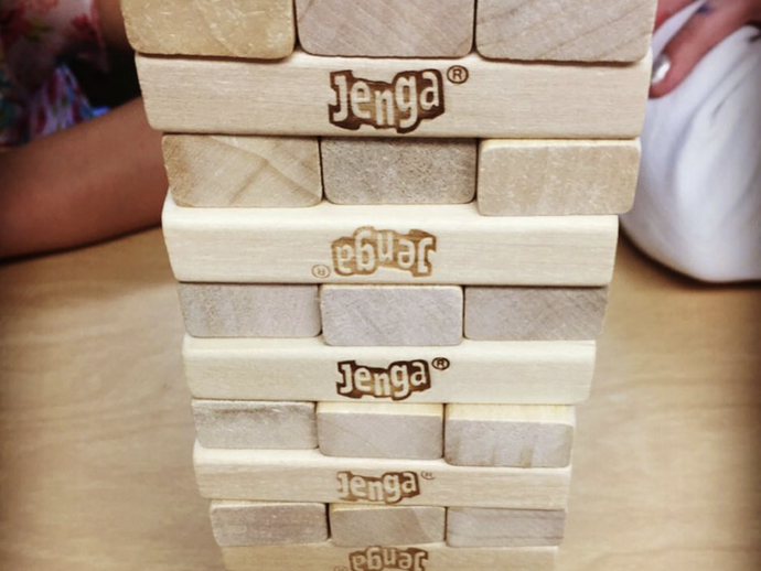 Jenga is a fun game for adults and kids! You’d be surprised how many motor skills are being worked on when stacking and pulling the...